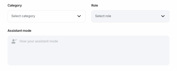Based on your selected Category and Role, a pre-set prompt will automatically populate in the Assistant Mode input box. This ensures the chatbot’s behavior and responses are tailored to the chosen identity.